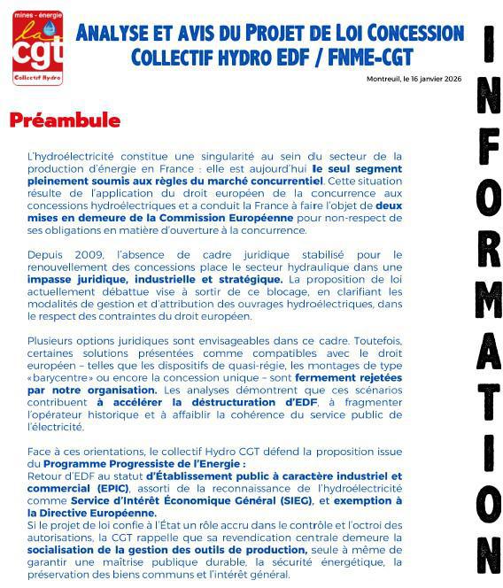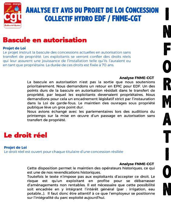 Analyse et avis projet de loi concession Hydro