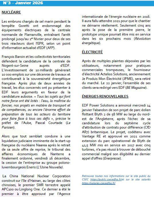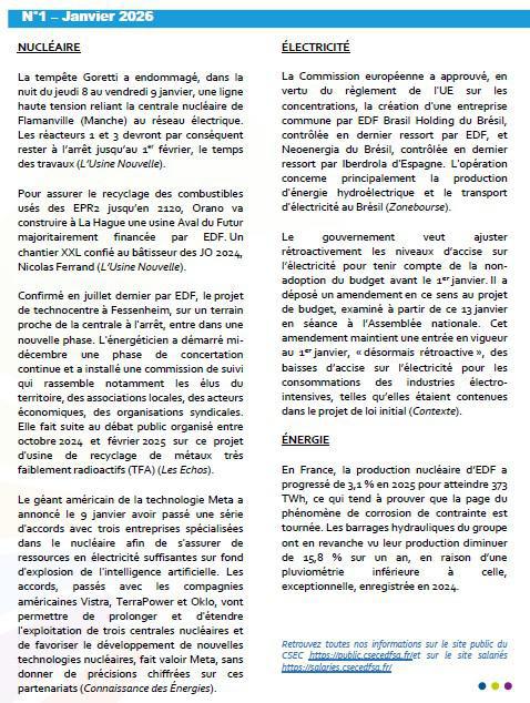 La documentation du CSEC EDF SA vous propose régulièrement ses brèves. C'est un compte-rendu de l'actualité énergétique.