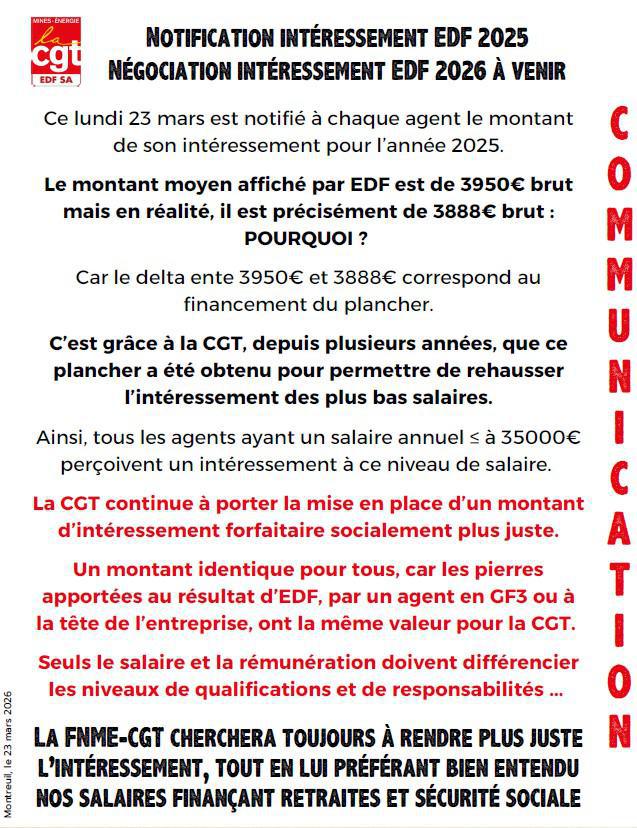 Intéressement EDF 2025 et négociation intéressement 2026 à venir.